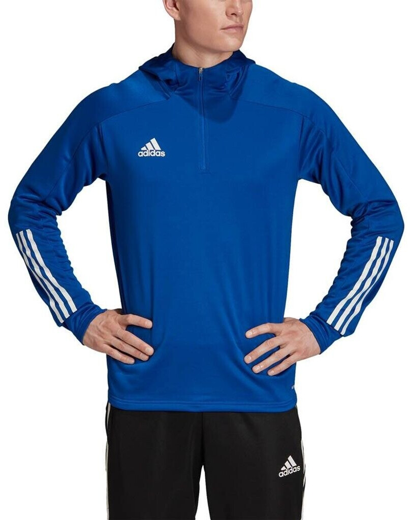 Η Adidas Condivo 20 TK HOOD είναι μια αθλητική ζακέτα με κουκούλα υψηλών προδιαγραφών, σχεδιασμένη για ποδοσφαιρική προπόνηση, ζέσταμα πριν τον αγώνα αλλά και καθημερινή αθλητική χρήση. Ο δυναμικός συνδυασμός Royal Blue με λευκές λεπτομέρειες προσφέρει κλασικό adidas στυλ με επαγγελματική αισθητική.
