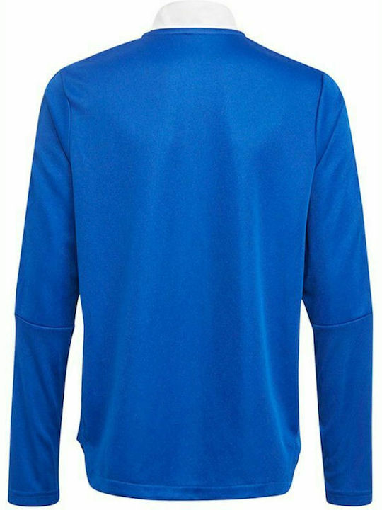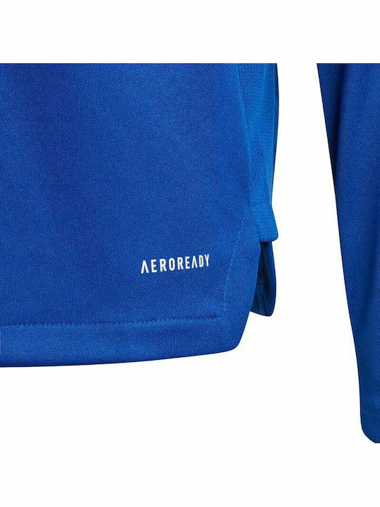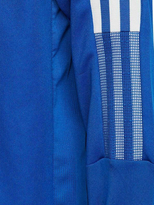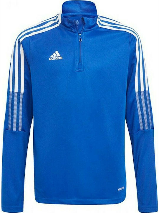 Παιδικό sweatshirt adidas Tiro 21 Training Top σε μπλε χρώμα. Ιδιότητες: Το ποδοσφαιρικό μπλουζάκι της adidas, σχεδιασμένο για παιδιά, αποδεικνύεται ιδανικό κατά τη διάρκεια της προπόνησης. Υψηλός εσωτερικός γιακάς, φερμουάρ έως τη μέση του στήθους. Εφαρμοστή γραμμή με πλαϊνές ανοίξεις. Η τεχνολογία Aeroready βοηθά στην ξηρασία του δέρματος και αυξάνει την άνεση. Ρίγες στα μανίκια και διακριτό λογότυπο. Κατασκευασμένο από Primegreen ίνες. Υλικό: 100% ανακυκλωμένο πολυεστέρα.