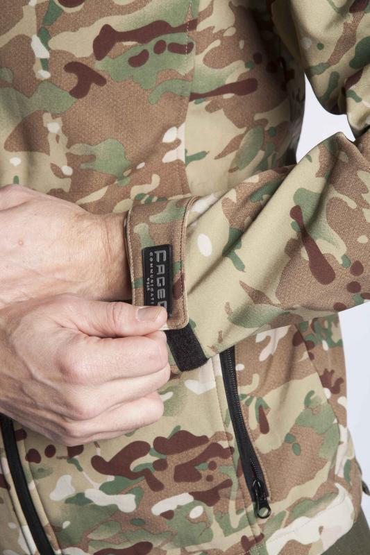 Kυνηγετικό μπουφάν softshell, από την Fageo, ιδανικό για εξωτερικές δραστηριότητες αλλά και για καθημερινή χρήση. Είναι κατασκευασμένο από άνετο, ελαφρύ υλικό που παρέχει μέτρια προστασία σε βροχή και ελαφριά χιονόπτωση. Διαθέτει διαπνέουσα μεμβράνη για τη διατήρηση της θερμοκρασίας του σώματος σε σταθερά επίπεδα. Το χαρακτηριστικό του αυτό σας απαλλάσσει από την ανάγκη πολλαπλών στρώσεων ρούχων, καθώς μπορεί να αντικαταστήσει τη μεσαία και την εξωτερική στρώση.